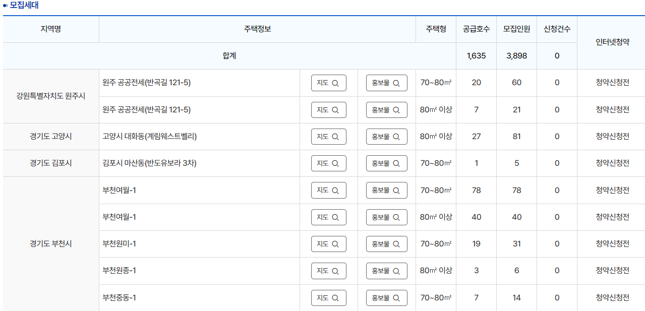 각 지역별로 공급되는 주택정보 입니다. 내 지역명으로 미리 확인하셔야 신청이 가능합니다.