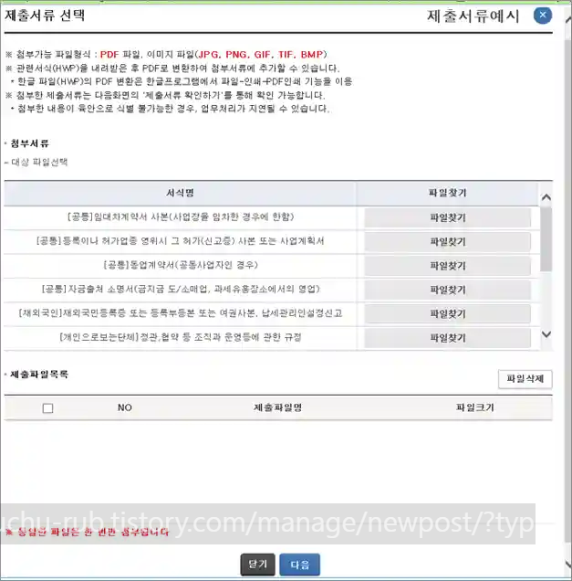 마지막으로 사업자 등록에 필요한 서류를 제출합니다.
