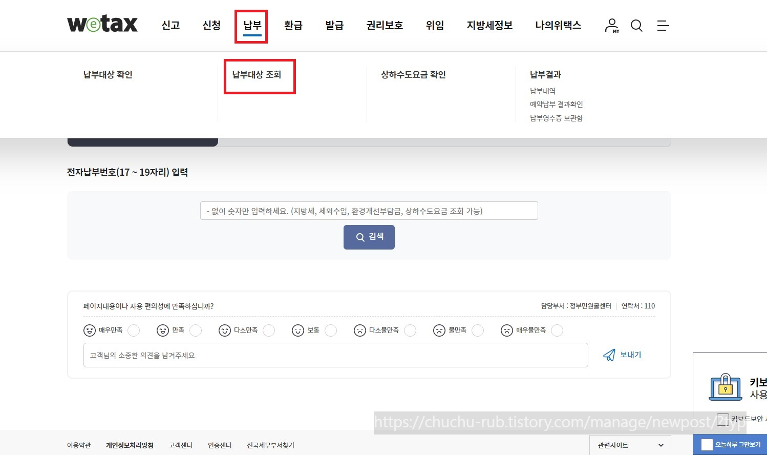 주차위반 과태료는 사이트 내에서 바로 카드 납부가 가능 합니다.